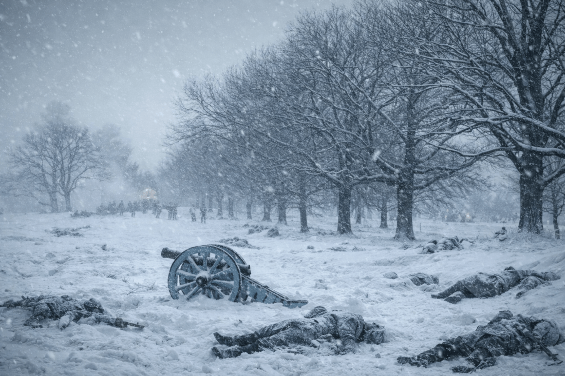Men began to vanish from the edges of camps. Lone runners failed to return. Wounded soldiers, dragged away from shell holes and shallow graves, left only streaks of dark red in the snow.